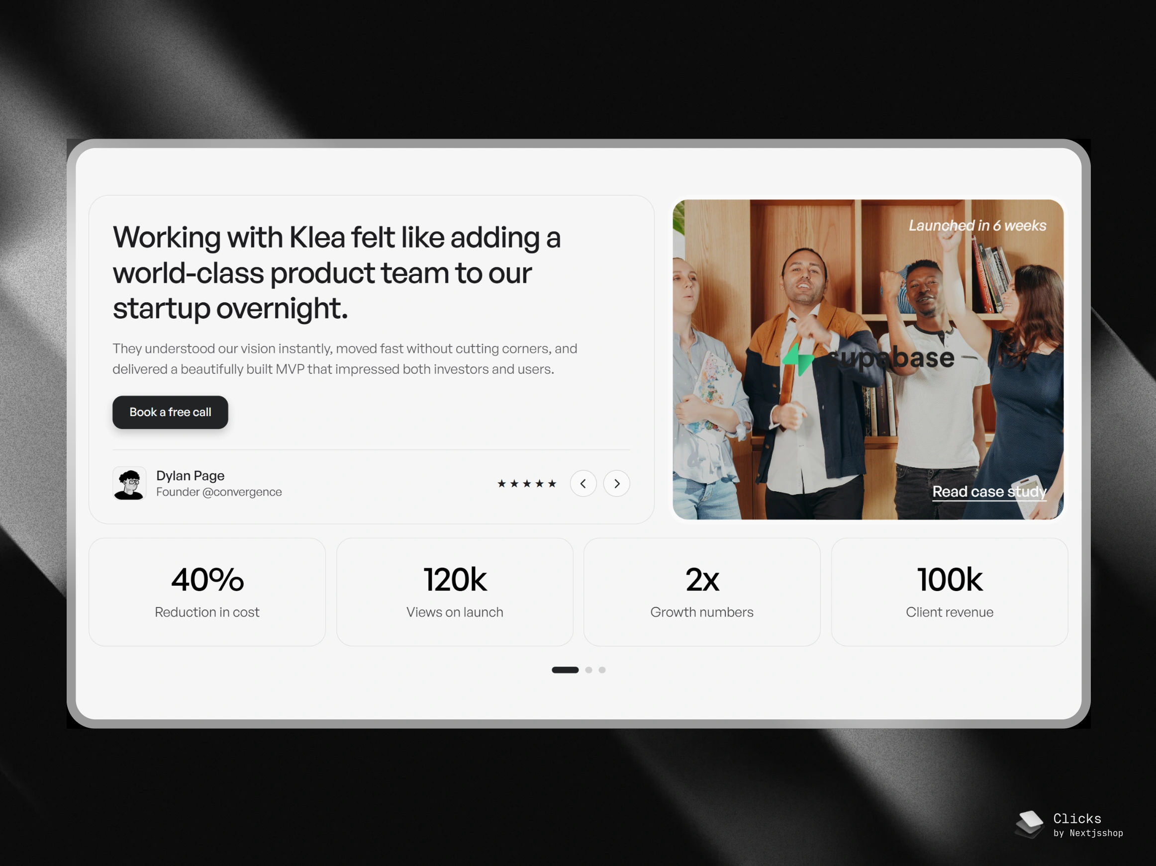 Build trust with social proof, case studies, and performance metrics that resonate with founders, investors, and users alike. Perfect for SaaS, product agencies, and startup-focused landing pages.